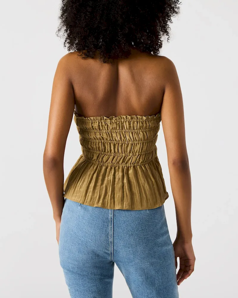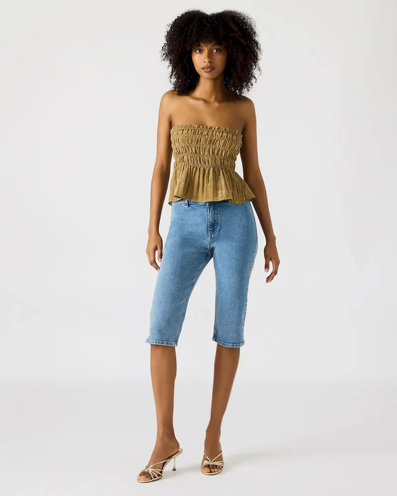 The CAMBRIA top features a strapless ruched top and pull-on style, providing a comfortable and stylish option for your wardrobe. With its versatile design, this top is perfect for any occasion and can easily be dressed up or down. Upgrade your look with this must-have piece.