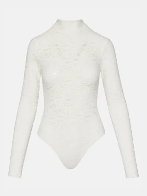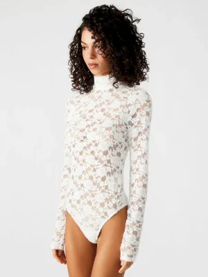 Expertly crafted for comfort and style, the CASSIE bodysuit is a must-have addition to any wardrobe. Featuring a mock neck and bodycon fit, this long-sleeved sheer bodysuit is designed with a delicate mesh lace for a touch of elegance. The bottom snap closure provides a seamless and secure fit for all-day wear.