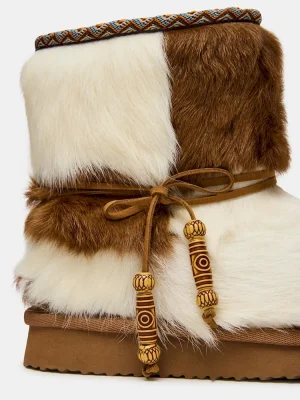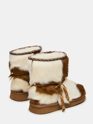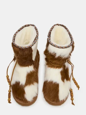 Introducing the CATTLEI faux fur ankle boot! This stylish bootie features a unique cow print design, adding a touch of fun to any outfit. With its comfy faux fur lining, your feet will stay warm and comfortable all day long. Elevate your winter wardrobe with this must-have boot.