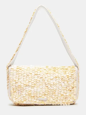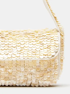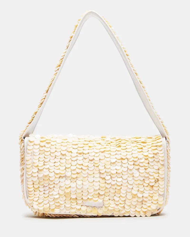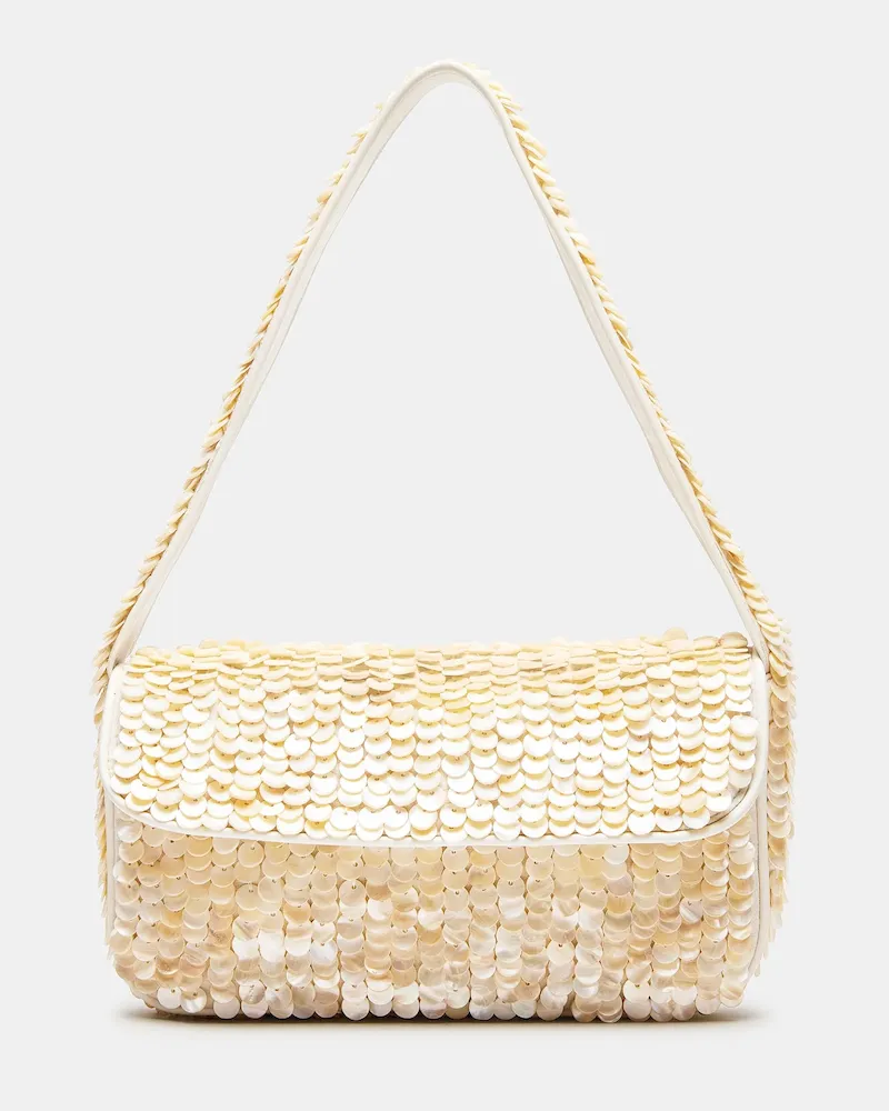 The CHARLI bag is the perfect blend of style and functionality. Embellished with shell disc-shaped beads, it adds a touch of glamour to any outfit. The interior pouch back wall allows easy organization, while the front flap and mag snap closure keep your belongings secure. Ideal for any occasion, this bag is a must-have accessory.