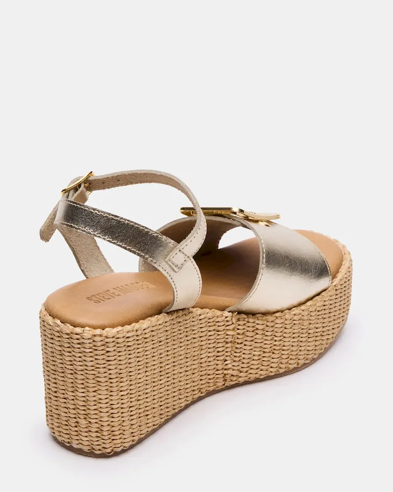 Elevate your style with the CIDER platform wedge sandal, featuring a sleek buckle detail on the strap for a secure and adjustable fit. The wedge design offers comfortable height and stability, making it ideal for all-day wear. Crafted to blend fashion with function, this sandal complements both casual and dressy looks effortlessly.
