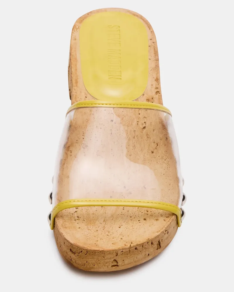 Step confidently with the CLEMENT slide sandal, featuring stylish stud detailing that adds a modern edge. Its wood bottom offers durability and a natural aesthetic, while the rounded toe ensures comfort throughout the day. Perfect for elevating any outfit with a blend of contemporary design and practical wearability.