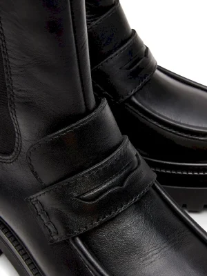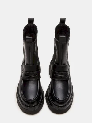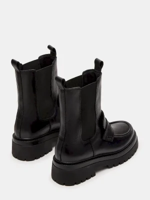 These CONWAY BLACK LEATHER platform lug booties combine rugged durability with modern style. Crafted from premium materials, they feature a thick lug sole that provides excellent traction and long-lasting wear. The platform design adds height while maintaining comfort, making them ideal for both urban adventures and practical everyday wear. Expertly constructed for reliability and edge, these booties are a versatile addition to any wardrobe seeking both function and fashion.