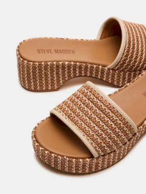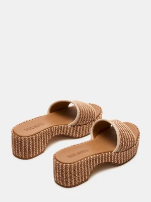 Introducing the COSIMA platform slide sandal. A stylish and versatile addition to your shoe collection. With a comfortable slip-on design and platform sole, these raffia sandals offer both fashion and function.