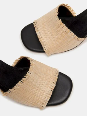 The CRESCENT square toe mule heel combines style and comfort in one elegant design. Made with raffia for a unique and luxurious touch, this heel is perfect for any occasion. Its square toe offers a classic look, while the mule design provides easy slip-on access. Elevate your wardrobe with this must-have shoe.