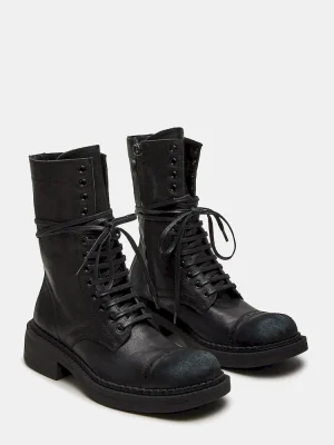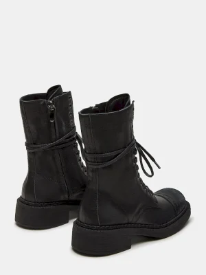 Expertly crafted, the CRIMSON bootie features a trendy moto style and durable lace-up design. These combat boots are perfect for adding a touch of edge to your wardrobe while providing comfort and resilience for daily wear.