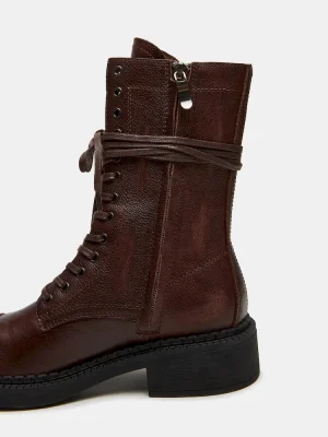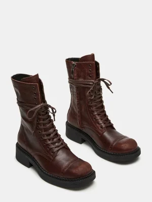 Expertly crafted, the CRIMSON bootie features a trendy moto style and durable lace-up design. These combat boots are perfect for adding a touch of edge to your wardrobe while providing comfort and resilience for daily wear.