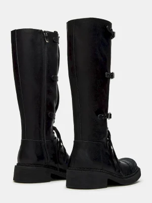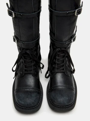Introducing the CRITICAL square toe lace-up moto boot, designed for the modern and edgy individual. Its square toe adds a unique touch while the lace-up design ensures a snug fit. These boots are both stylish and durable. Upgrade your footwear collection today!