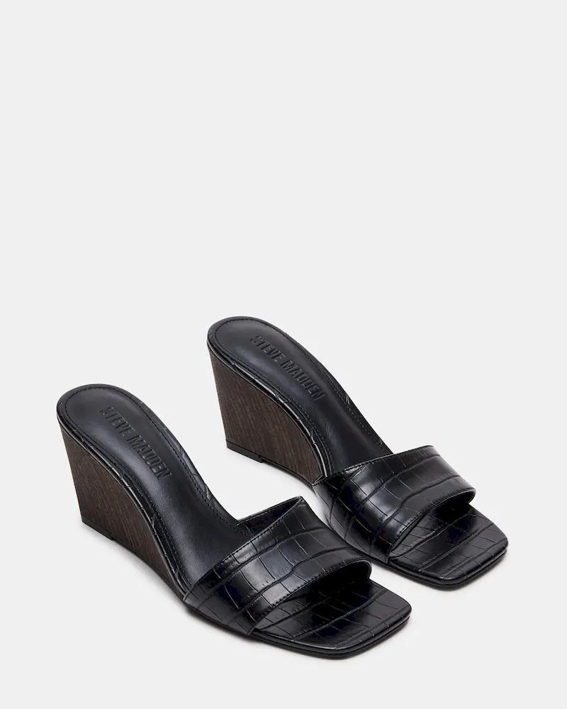 This square-toe wedge sandal by CURCIO features a chic crocodile design, adding a touch of elegance to any outfit. The wedge provides height and stability, while the square toe offers comfort and a modern feel. Elevate your style with this sophisticated and versatile sandal.