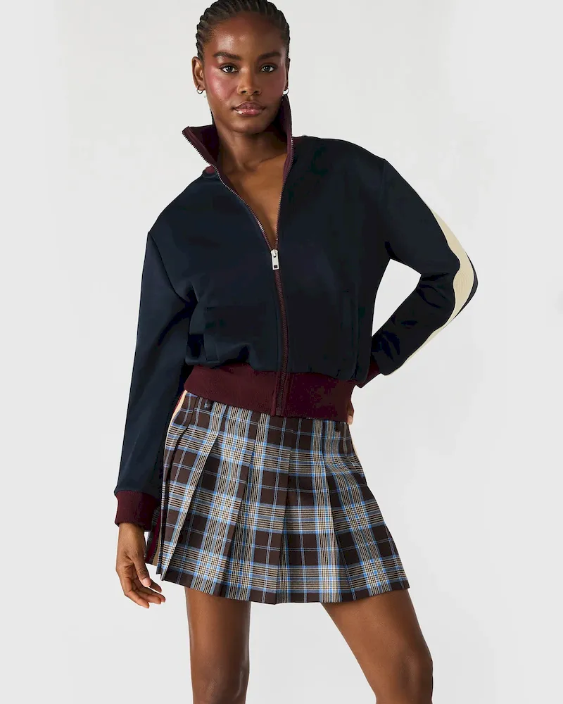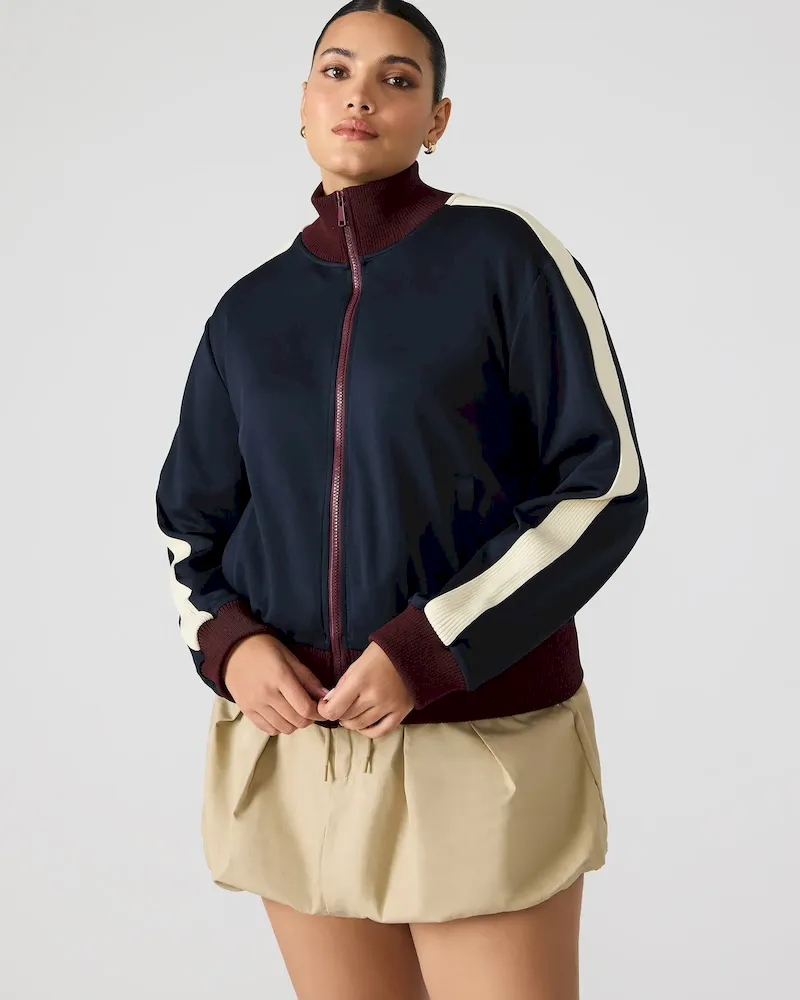 This DAISY zip-up long-sleeved athletic jacket features a sleek collared neckline and is designed to coordinate perfectly as part of a matching set. Crafted for both style and performance, it offers a streamlined fit ideal for layering during workouts or casual wear.
