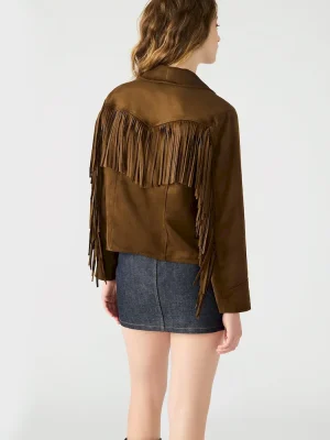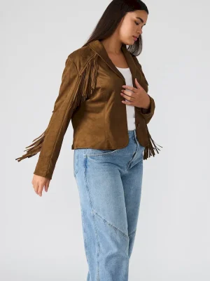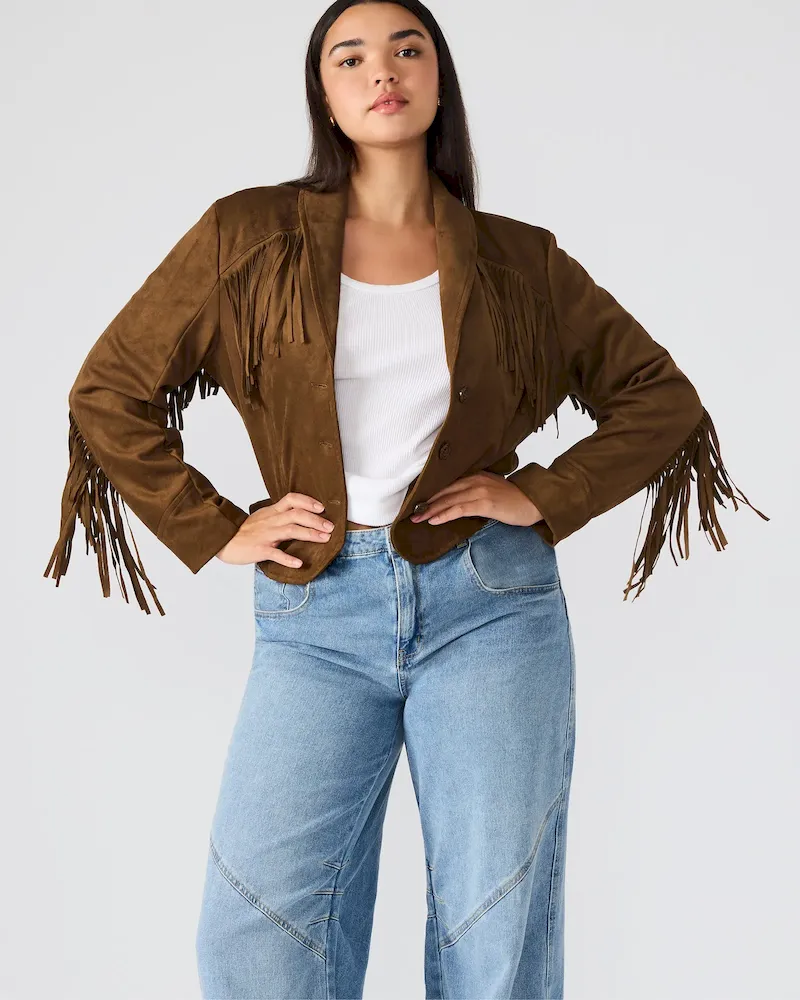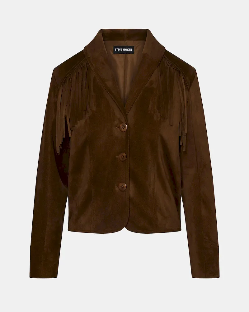 This long-sleeved DALLAS jacket features a distinctive fringe design and collared neckline that adds texture and movement to its classic silhouette. Crafted for both style and comfort, it offers a refined layering option that elevates any outfit with a subtle Western-inspired edge. Ideal for transitional weather, this jacket combines timeless design with expert detailing.