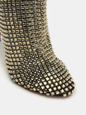 Elevate your footwear collection with the DANCIN GOLD MULTI heeled bootie. Featuring an elegant rhinestone mesh overlay, this design adds a sparkling touch to any outfit while maintaining breathability and comfort. Its sleek silhouette and refined heel height ensure both style and stability, making it ideal for evening events or sophisticated occasions. Crafted for those who appreciate a blend of glamour and expert design, this bootie promises to enhance your look with subtle yet striking detail.