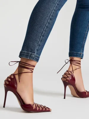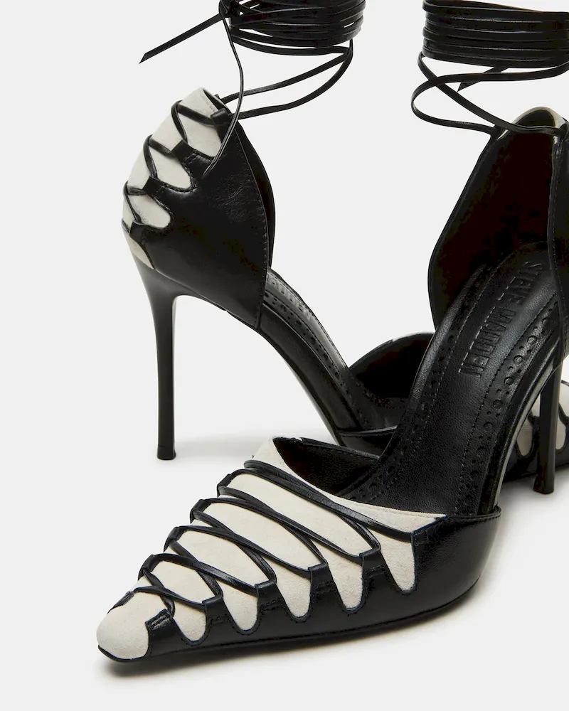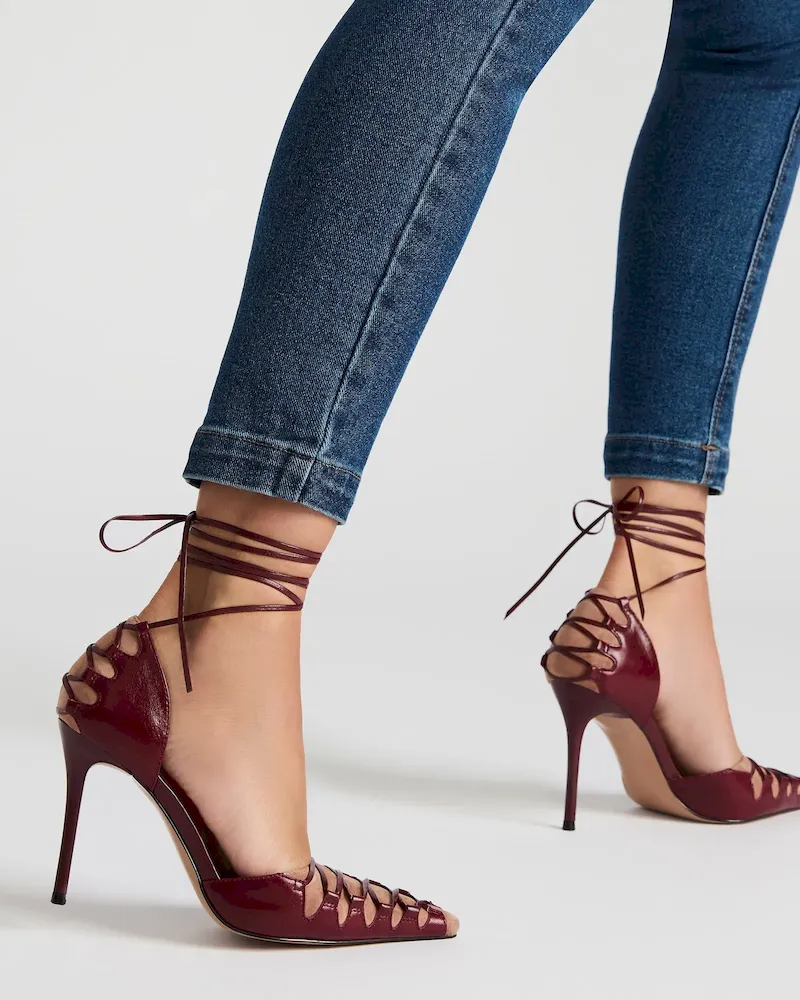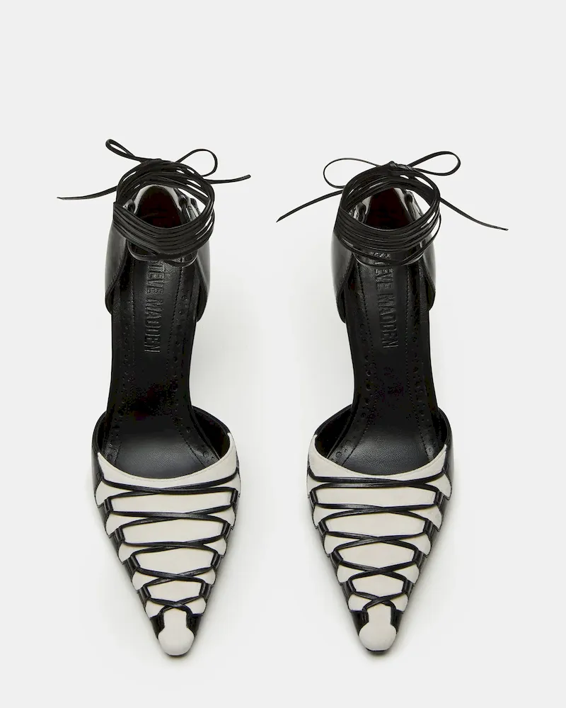 The DANGER is a stylish and sophisticated pointed-toe stiletto heel pump. The unique strappy and lace-up design adds a touch of elegance to any outfit. With its sleek silhouette and comfortable fit, this shoe is perfect for any fashion-forward individual looking to make a statement.