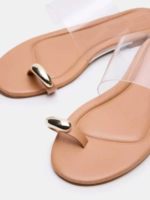 The DECADENT slide sandal features a flat, rounded toe design paired with a distinctive toe ring detail, offering a modern twist on classic comfort. Its sleek silhouette ensures effortless style, making it an ideal choice for both casual and refined looks. Crafted for ease and elegance, this sandal balances unique design with everyday wearability.