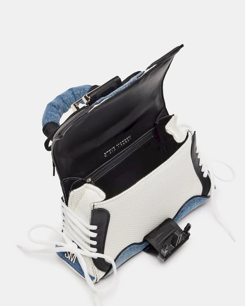 SPORTY + DYNAMIC + EXTRAThe DIEGO bag is a structured trapezoid bag with athletic-inspired details like mesh overlay panels, sneaker style lacing, and an oversized quick release buckle closure.