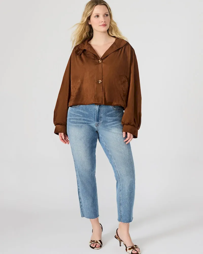 The DIERDRA long-sleeved, collared button-up jacket combines classic tailoring with practical design. Featuring two functional front pockets, it offers convenient storage while maintaining a polished silhouette. Ideal for layering, this jacket delivers both style and utility for a refined, versatile wardrobe staple.