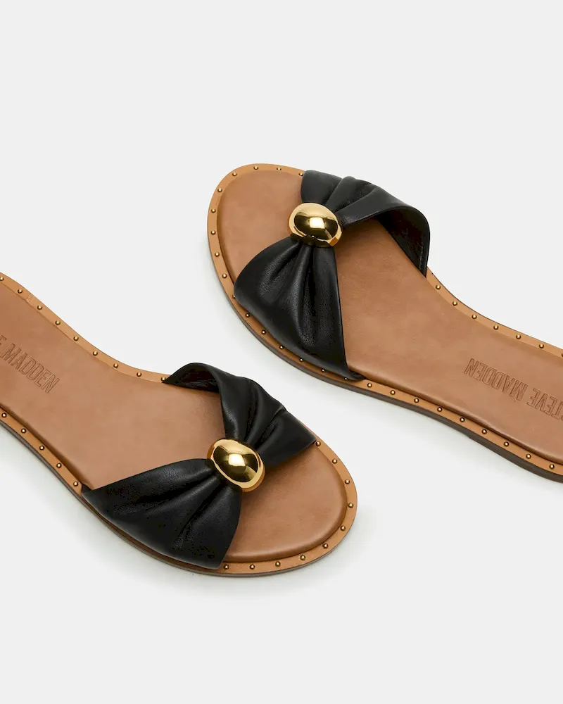 This DIPSY slide sandal features mini studs and a rounded toe for added style and comfort. The perfect combination of fashion and practicality, these sandals are a must-have for any wardrobe. With their leather design, they add a touch of rustic charm to any outfit.