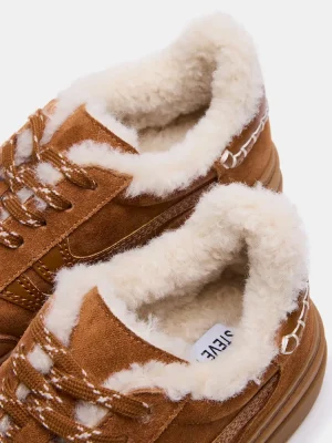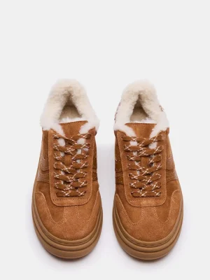 Introducing the DODGE FAUX FUR CHESTNUT SUEDE sneaker, designed for both style and function. This low-top sneaker features a lace-up design for a secure fit and effortless style. With a sleek and versatile design, these sneakers are perfect for any casual or athletic occasion.