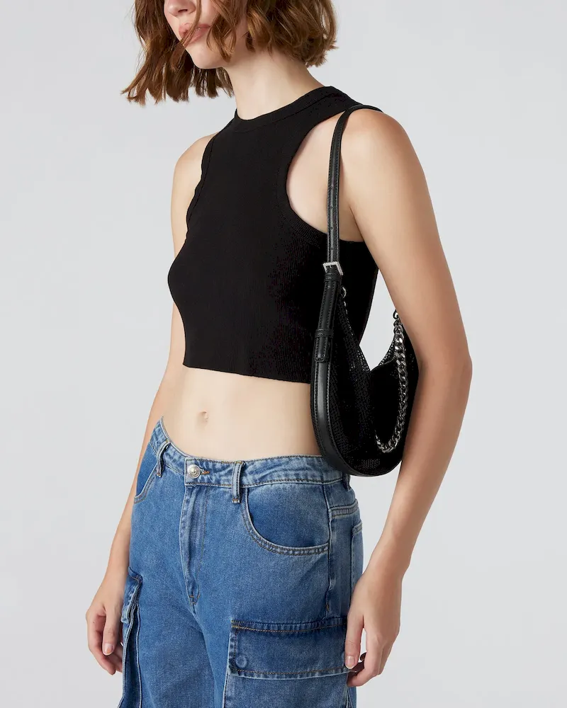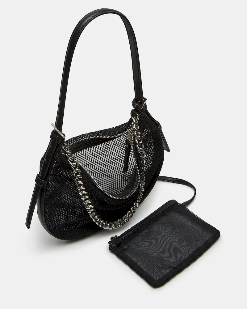 Expertly designed DREAMIN bag features see-through mesh and a chunky chain. This versatile bag offers both functionality and style, allowing you to easily see and access your belongings while making a statement. Perfect for any occasion, add a touch of elegance to your outfit with this must-have bag.