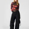 - Snap strap at hem to cinch ankles