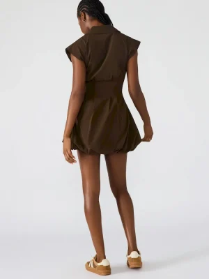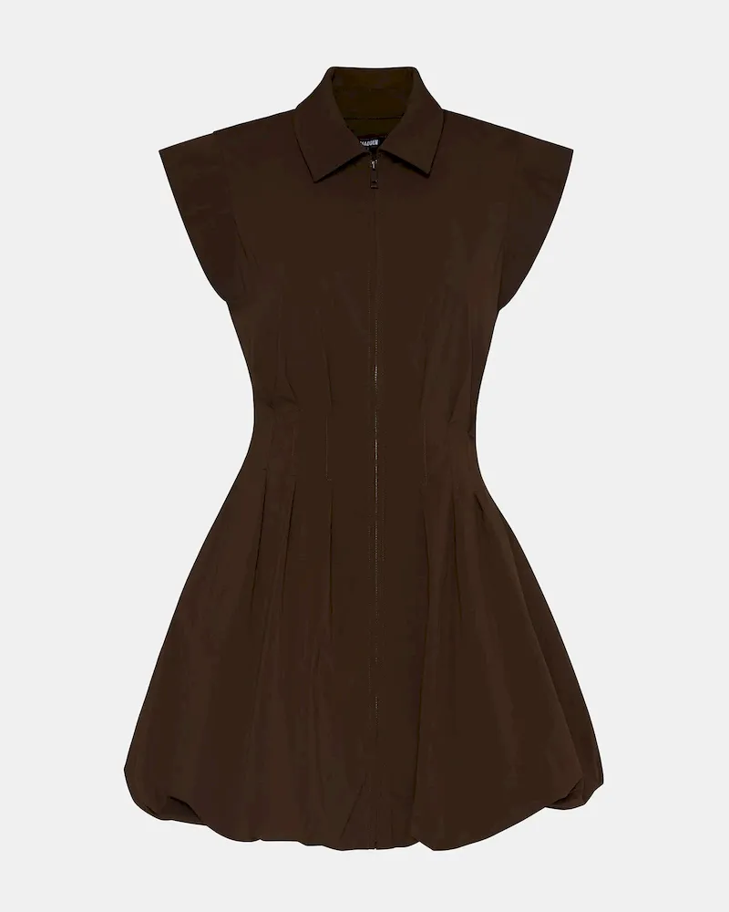 The DYANNE dress is a stylish mini dress featuring a zip front and bubble hem in tech nylon. With a collared neckline, this dress is perfect for any occasion and provides a modern, chic look. Made with high-quality materials, it offers both comfort and durability. Get ready to turn heads and stand out in this must-have dress.