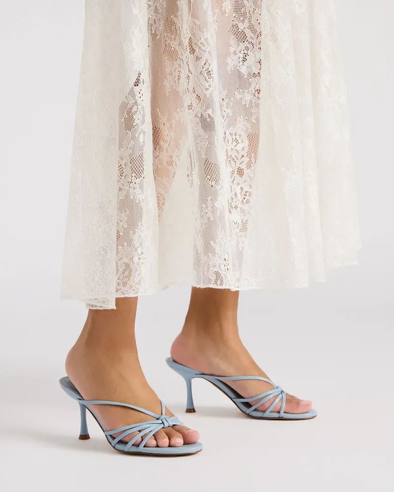 The EDNA is a stylish shoe that features a mule heel, strappy design, and rounded toe. Its elegant design and comfortable fit make it perfect for any occasion, while its high-quality materials ensure durability and long-lasting wear. Elevate your wardrobe with this must-have shoe.