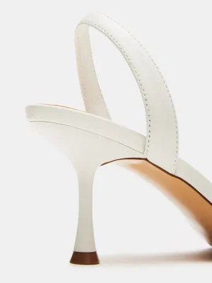 TIMELESS + ELEVATED + DAINTY2 slender straps, 1 slingback and 1 over the toe, secure the ELMA to a kitten heel sole for a minimalist approach to the classic dress sandal.