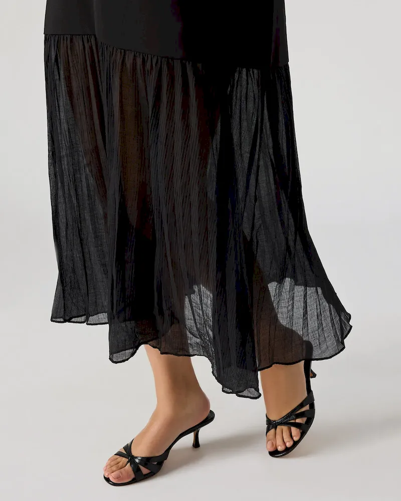 Upgrade your wardrobe with the EMBER dress. This flowy maxi dress features adjustable straps for a personalized fit. Stay comfortable and stylish all day long.
