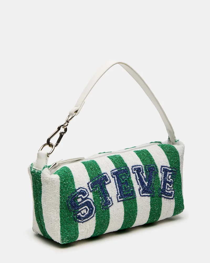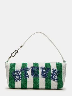 Expertly designed, the EMERSYN bag boasts fully beaded details and a logo design beaded into the bag. With hardware to attach charms and secure zipper closure, this bag also features a back wall zipper pocket for additional storage. Exude style and functionality with this chic accessory.