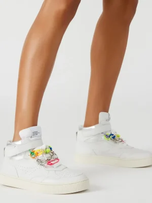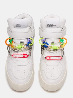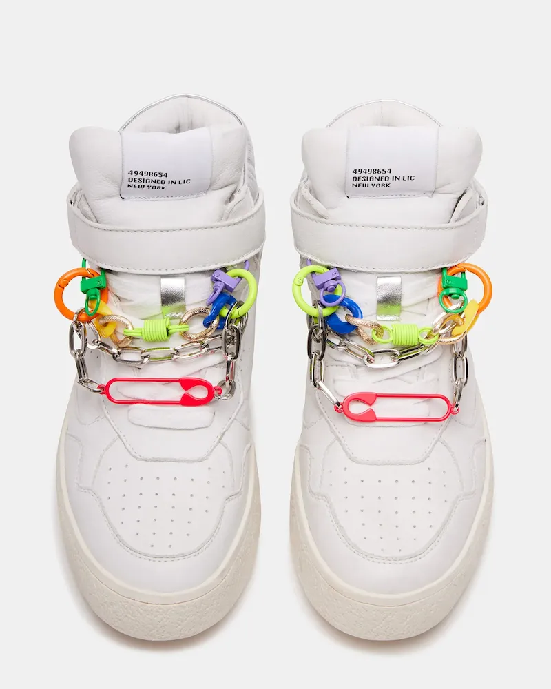 SPORTY + QUIRKY + FUNThe EMILEE sneakers feature a padded collar and flatform sole for a substantial, structured silhouette. A selection of cheerfully mismatched charms and chains accent the laces for a pop of color.