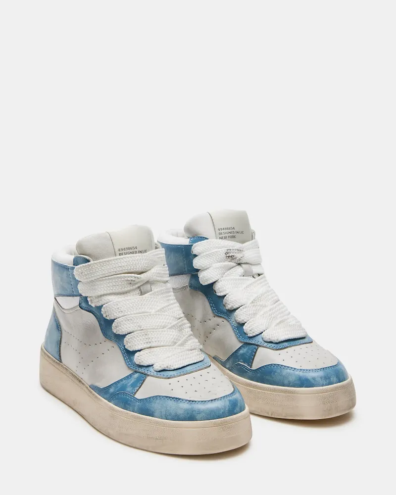 HYPE + EASY + CLASSICThe ENDLESS high top sneaker finishes a structured flatform design with allover distressing and extra-wide laces.