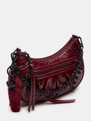 The ERIKA bag combines edgy elegance with practical design. Featuring studded pave rhinestones, this crinkle-textured crossbody adds a touch of sparkle to any outfit. Its chain shoulder strap offers a sleek look, while the detachable and adjustable crossbody strap ensures customizable wear. A detachable bag charm adds personalized flair, and the top-zipper closure provides secure and easy access to your essentials. Perfect for day-to-night wear, this bag balances stylish detail with functional versatility.