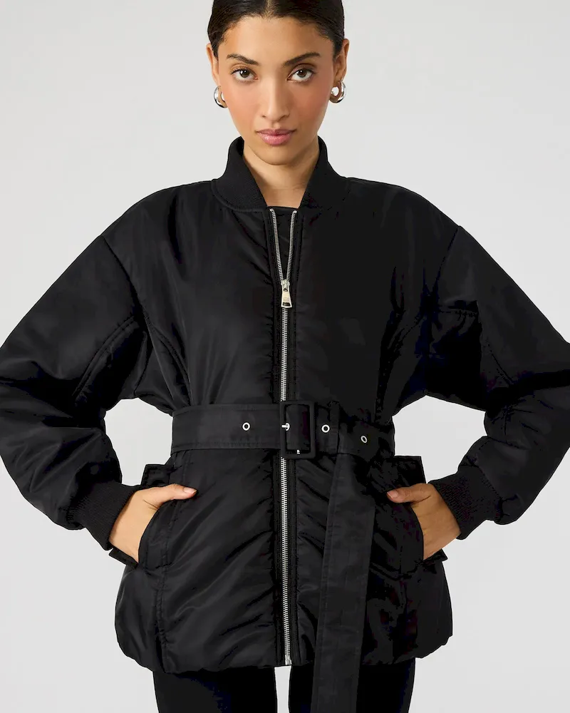 Elevate your cold-weather wardrobe with the ERYN jacket, a sleek, long-sleeved zip-up puff jacket designed for both warmth and style. Its belted silhouette provides a tailored fit that enhances your shape while locking in heat. Crafted for expert performance, this jacket combines functional insulation with refined detailing, making it an essential outer layer for chilly days without compromising on sophistication.