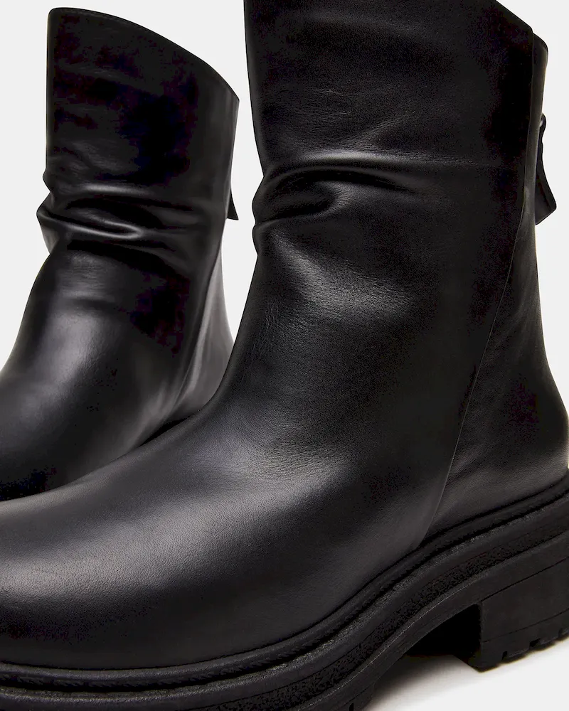 Expertly crafted with a scrunched design and a rounded toe the ESSENTIAL ankle boot combines style and functionality. The perfect lug bootie for any occasion, providing all-day comfort and durability. Elevate your wardrobe with this versatile piece.
