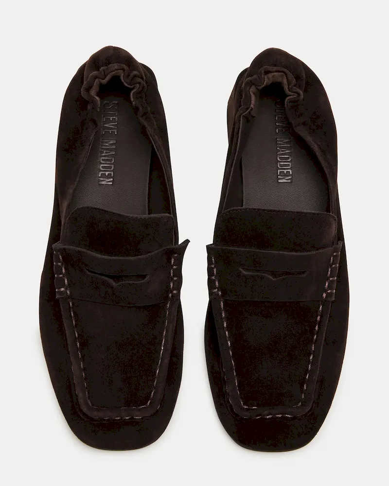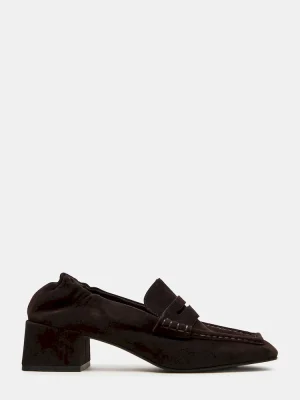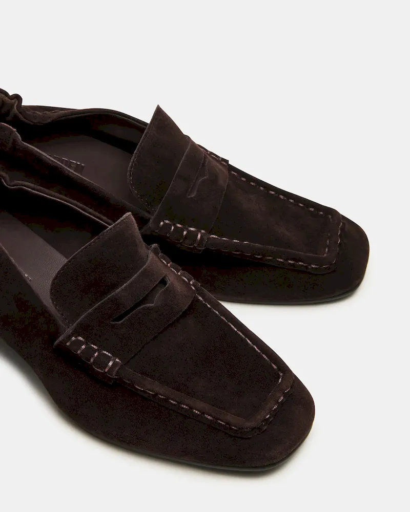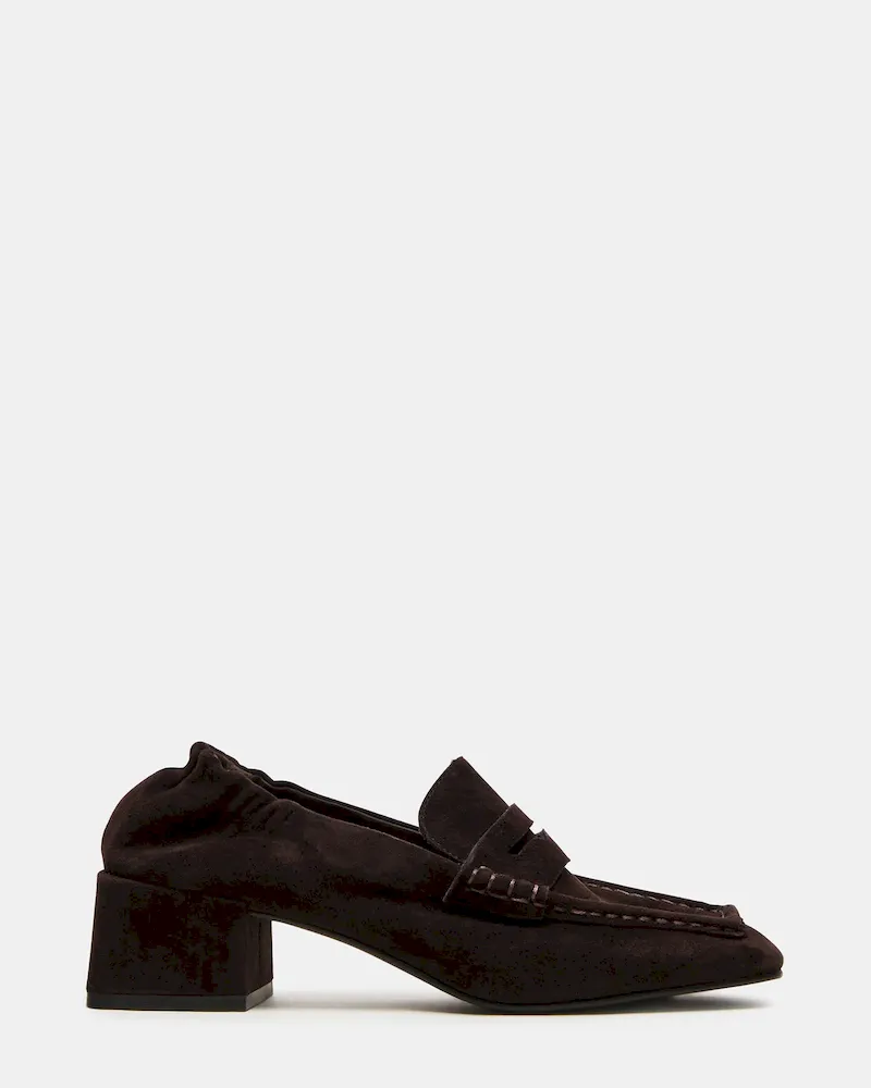 The ESTEE BROWN SUEDE loafer features a refined heeled square-toe design, combining contemporary style with expert craftsmanship. Its suede finish adds a subtle texture, while the structured heel provides both elegance and support. This loafer is ideal for professionals seeking a sophisticated yet comfortable shoe that enhances any outfit with a modern edge.