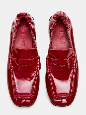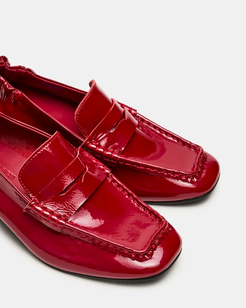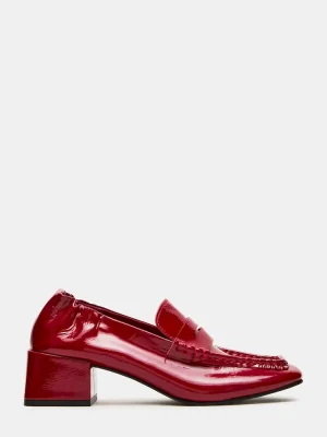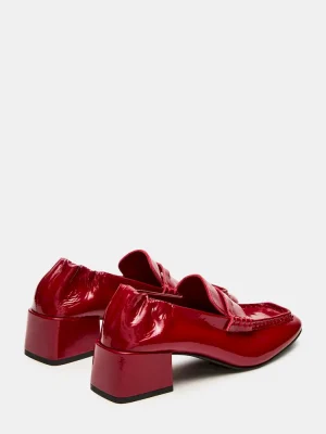 The ESTEE RED CRINKLE PATENT loafer features a refined heeled square-toe design, combining contemporary style with expert craftsmanship. Its crinkle patent finish adds a subtle texture, while the structured heel provides both elegance and support. This loafer is ideal for professionals seeking a sophisticated yet comfortable shoe that enhances any outfit with a modern edge.
