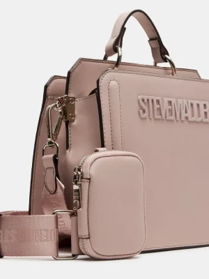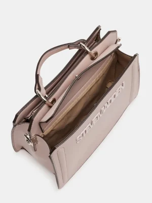 Clever interior organization and a matching modular zip pouch give the compact EVELYN bag surprisingly roomy storage. Reinforced edges, structured side gussets, and custom hardware add to the substantial look and feel of this top-handle design.