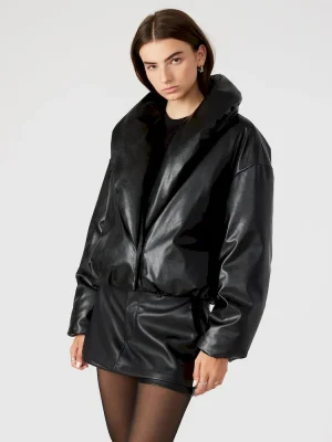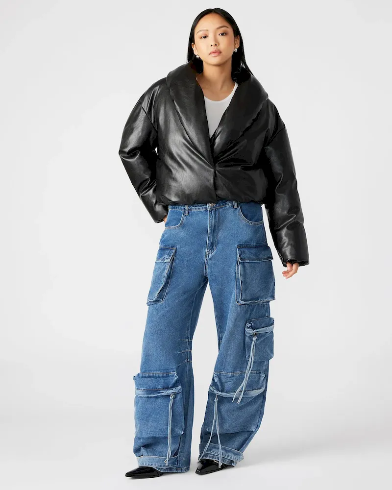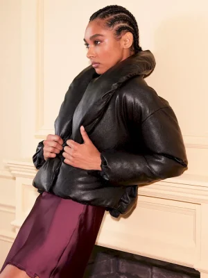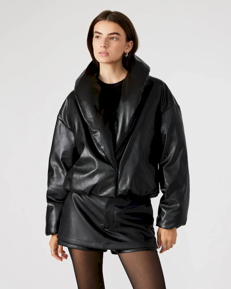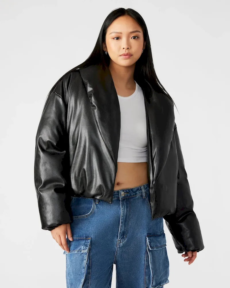 - Vegan leather puffer jacket