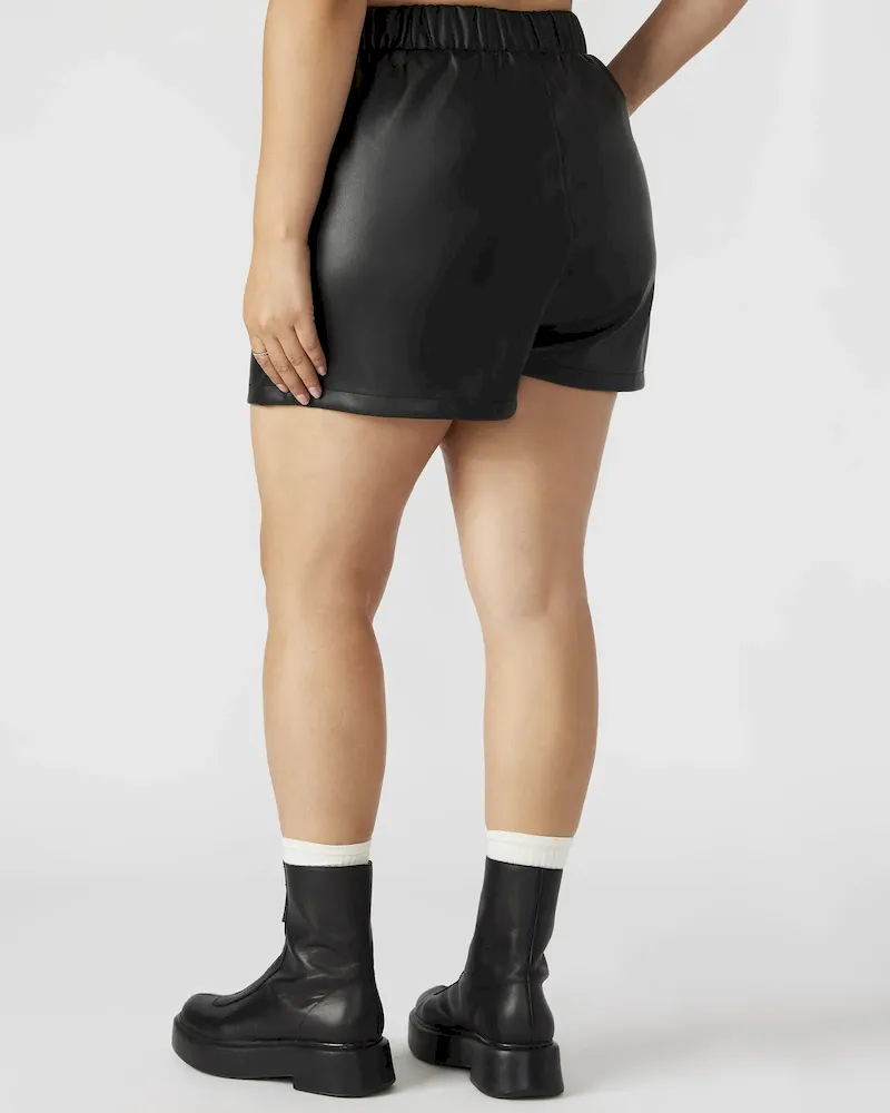 Crafted for comfort and style, the FAUX THE RECORD short features a wide elastic waistband that is both chic and versatile. The faux leather material adds a touch of ruggedness, while the pull-on design allows for easy wear.