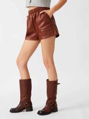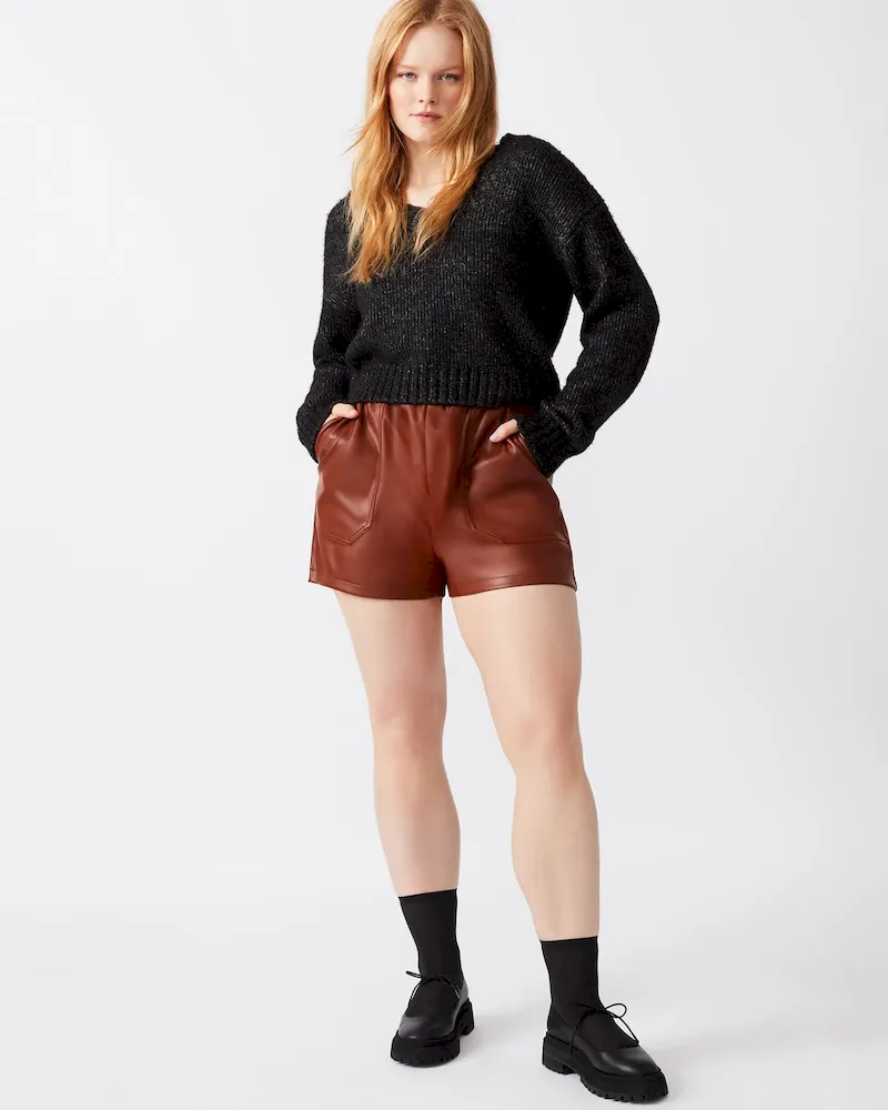 Crafted for comfort and style, the FAUX THE RECORD short features a wide elastic waistband that is both chic and versatile. The faux leather material adds a touch of ruggedness, while the pull-on design allows for easy wear.