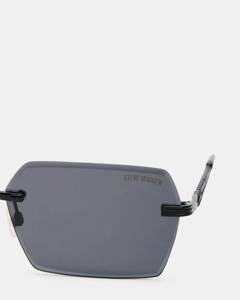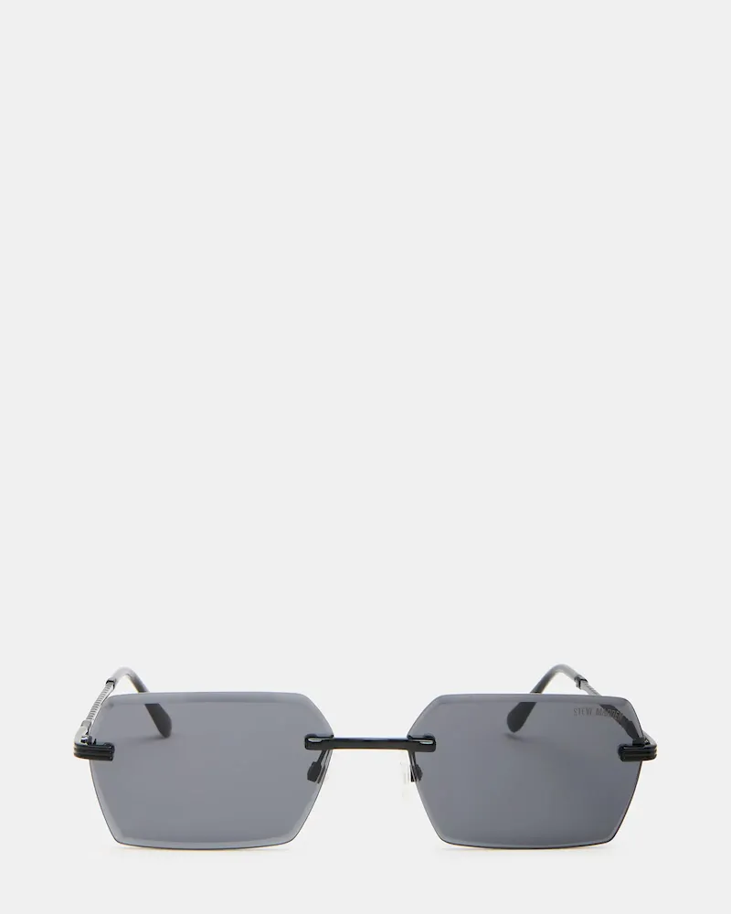 The FINNIAN sunglasses in black provide a sleek and stylish accessory for your sunny days. Made with shiny black opaque material and solid smoke lenses, these sunglasses are sure to protect your eyes while making a bold statement. Elevate your look with these high-quality shades.