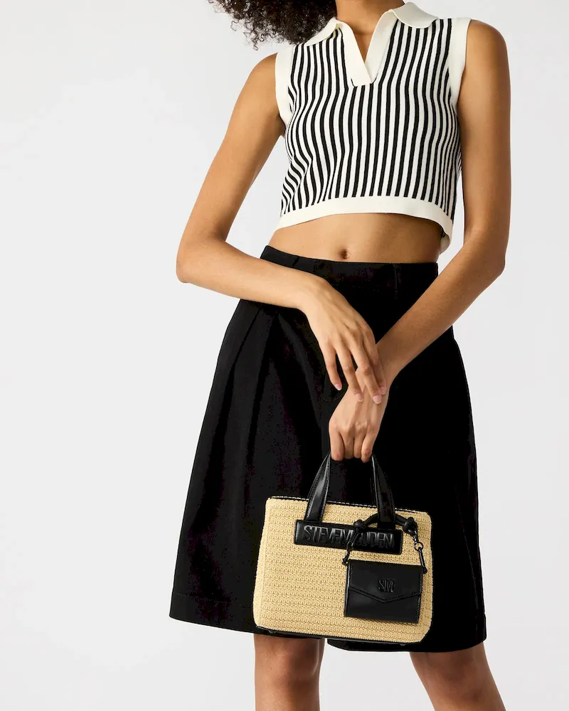 Expertly crafted for style and functionality, the FLORES bag is the perfect addition to your collection. Made with a small straw box tote bag design featuring shoulder straps, a mag snap closure, and a detachable pouch, this bag offers both convenience and versatility. The interior pouch back wall and interior front wall add extra storage options, making it a must-have accessory for any occasion.