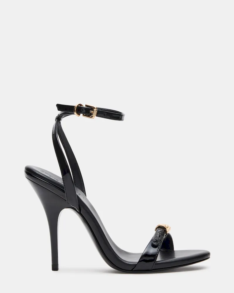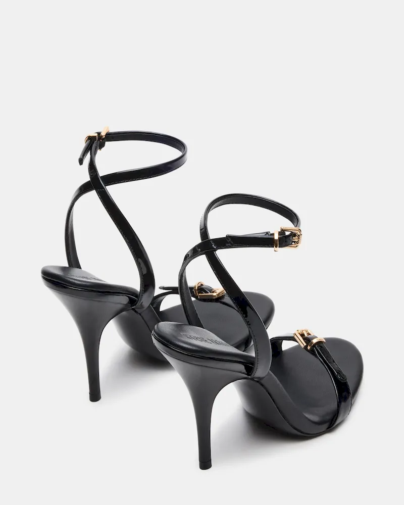 The FOXX stiletto heel boasts a charming buckle detail, complementing the open-toe design for a sophisticated look. The strappy construction provides stability and support, making these heels perfect for any occasion. Elevate your style with these stunning and elegant heels.