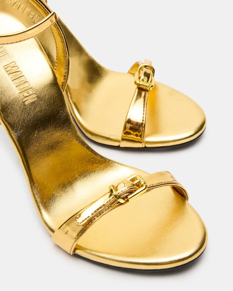 The FOXX stiletto heel boasts a charming buckle detail, complementing the open-toe design for a sophisticated look. The strappy construction provides stability and support, making these heels perfect for any occasion. Elevate your style with these stunning and elegant heels.