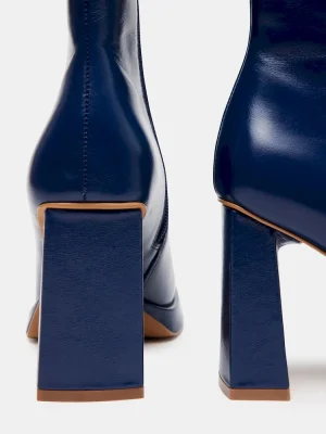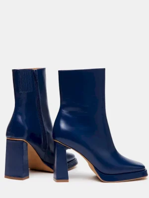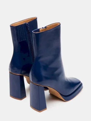 SOPHISTICATED + CLEAN + MODERNA square platform toe and a square block heel give the FREYA bootie an angular look and a comfortable, secure step.