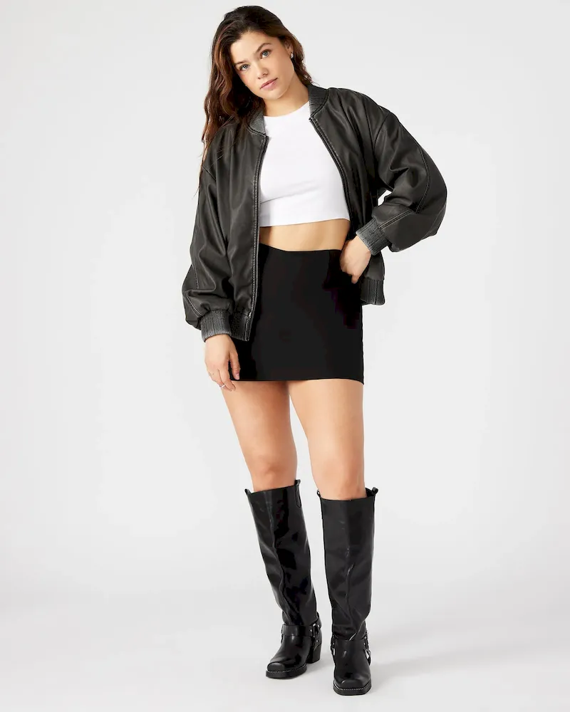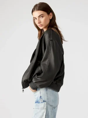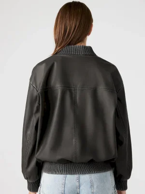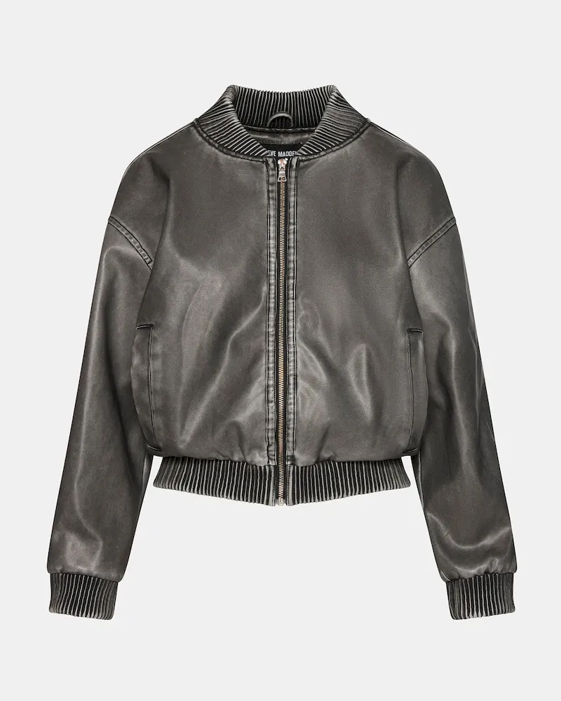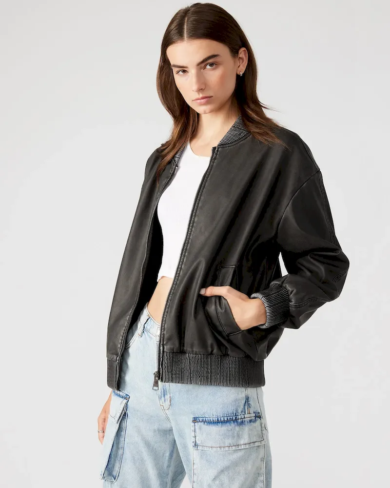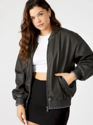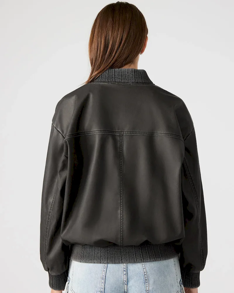 Elevate your outerwear game with the FYRA jacket. This washed faux leather bomber jacket features a zip front closure, 2 functional front pockets, and a fully lined interior for added comfort. With its oversized fit, this jacket exudes effortless style and sophistication. Upgrade your look with this versatile jacket.