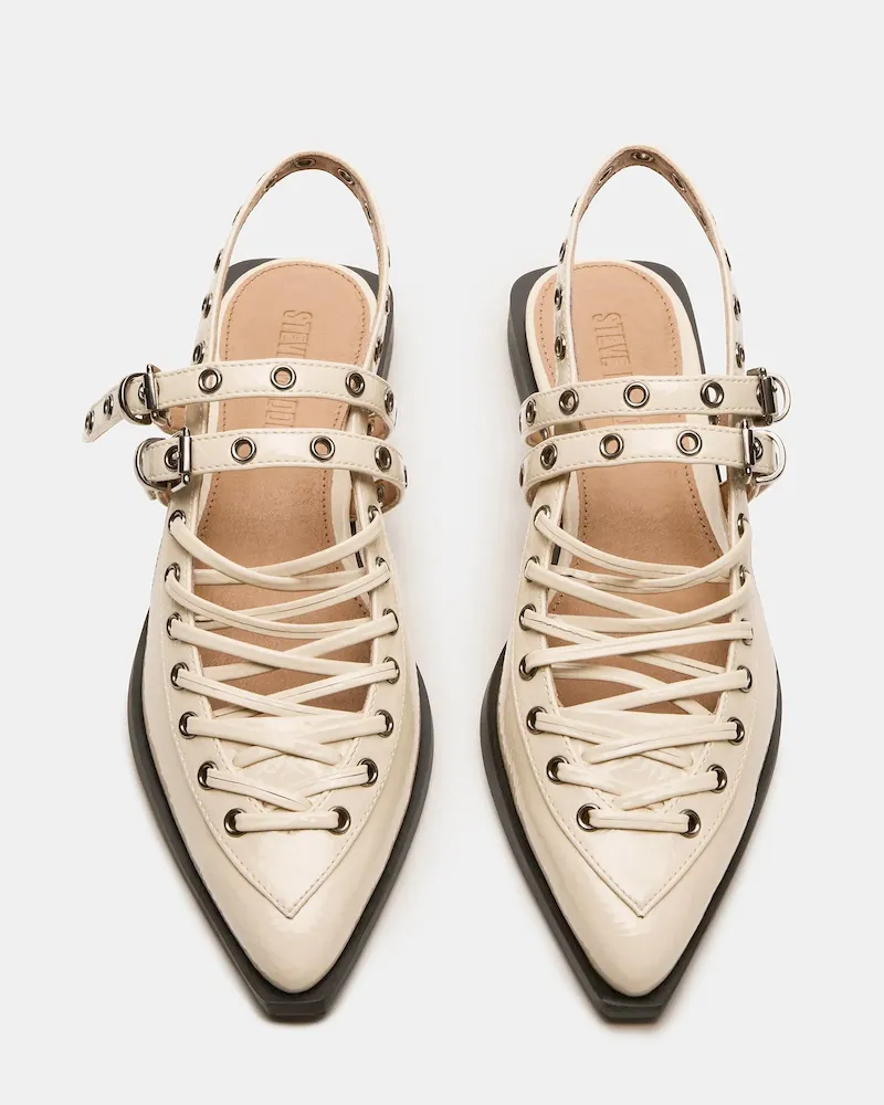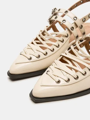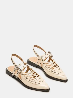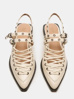 These GALANTI ballet flats feature a pointed-toe design and a slingback strap, creating a sleek and stylish look. The moto-inspired details add a touch of edginess to this classic silhouette. Perfect for any occasion, these flats provide comfort and fashion all in one.