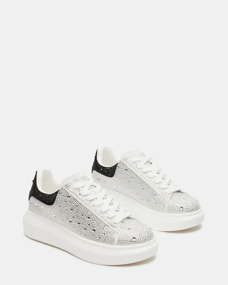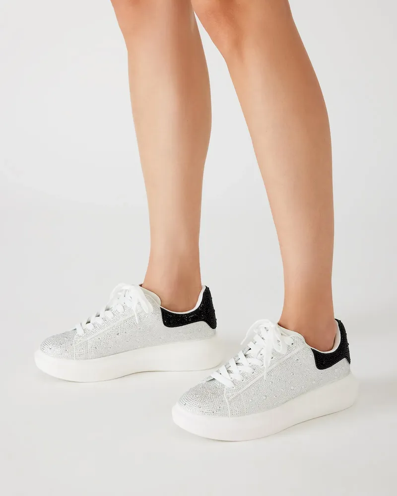 Add some sparkle to your step with GASP! These platform sneakers feature an eye-catching rhinestone detail and back tab contrast that will turn heads with every step. Lace them up and strut your stuff in style.