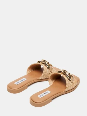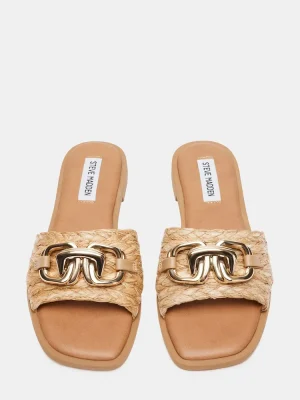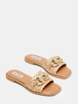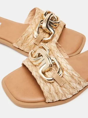 BREEZY + COOL + CHICSubstantial chain hardware tops the wide front strap of the GENE flat slide sandal.