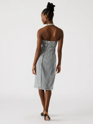 Expertly crafted, the GIA DENIM dress is a must-have for any wardrobe. Its side slit adds a touch of sophistication, while the back zipper closure ensures a perfect fit. Made from high-quality materials, this dress is both stylish and durable. Perfect for any occasion.